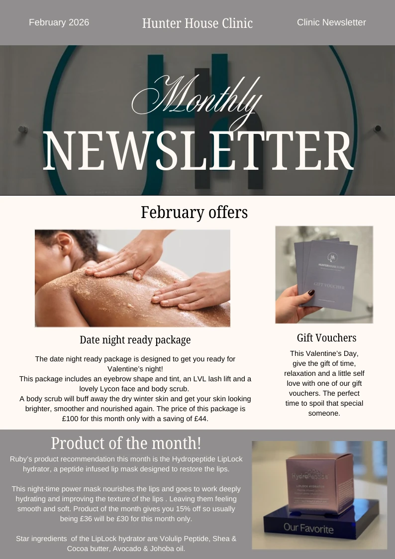 Ruby’s product recommendation this month is the Hydropeptide LipLock hydrator, a peptide infused lip mask designed to restore the lips.